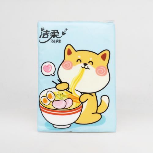 洁柔代工 于是就主打洁柔 在顶部有洁柔的logo 并自称就是洁柔手帕纸 纸巾是3层纸 但与洁柔的青春校园系列的3层纸相比 质量略差 耐拉扯能力并不如洁柔自有品牌的 外包装图案一般